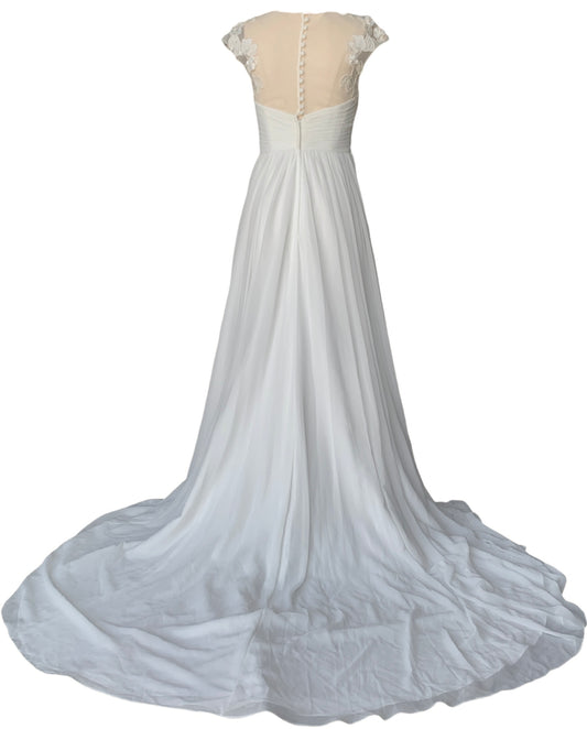 Classic Empire Waist Column Wedding Gown with Illusion Lace Shoulders & Chapel Train