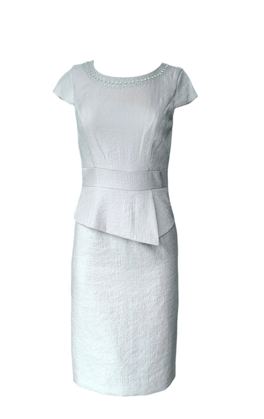 Ice Blue 2pc cap-sleeve peplum dress & 3/4 sleeve bolero jacket with beaded collar accents