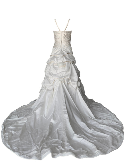 Laundered Satin Ruched Fit-and-Flare Gown with Bunched Skirt and Fabric Peony Accents